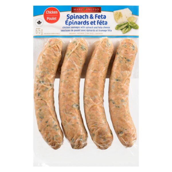 Marcangelo Chicken Sausages with Spinach and Feta Cheese. 679 g | 4 x 168.75g