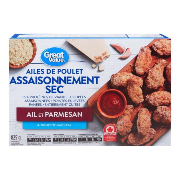 Great Value Frozen Dry Rub Garlic Parmesan Chicken Wings. 825g