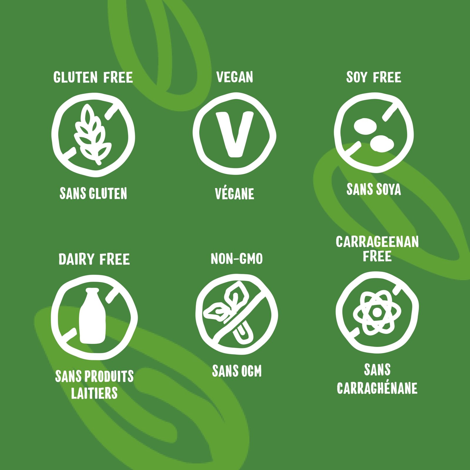 No dairy. soy. canola oil or carrageenan