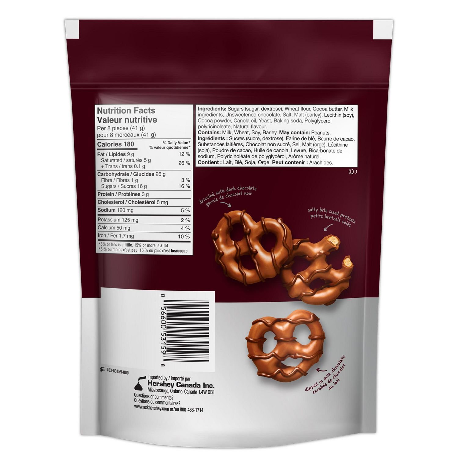 HERSHEY’S Milk Chocolate Dipped Pretzels are a delicious bite-sized sweet & salty snack. Each salty crunchy pretzel is dipped in milk chocolate and drizzled with dark chocolate- creating a delectable sweet and salty treat. Try them today!