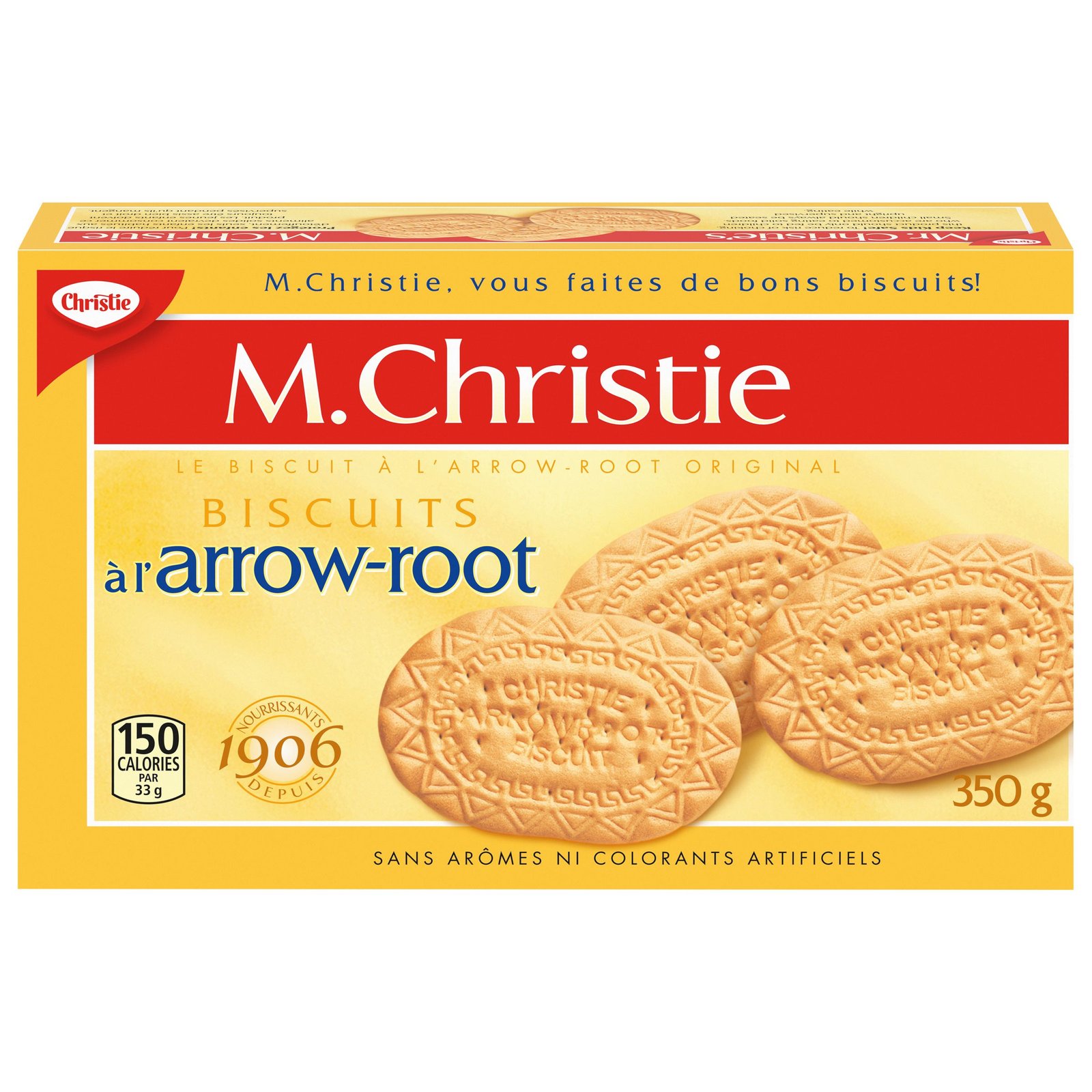 | Fabric Property | • This package contains one 350g box of CHRISTIE Arrowroot cookies. • A household favourite since 1906. Arrowroot cookies continue to delight kids and moms alike • These cookies are great for children to nibble on and are safe to give them as soon as they are ready for solid foods • No artificial flavour or colour • Each serving of Arrowroot cookie is only 1 gram of fat and no cholesterol or trans fat. |