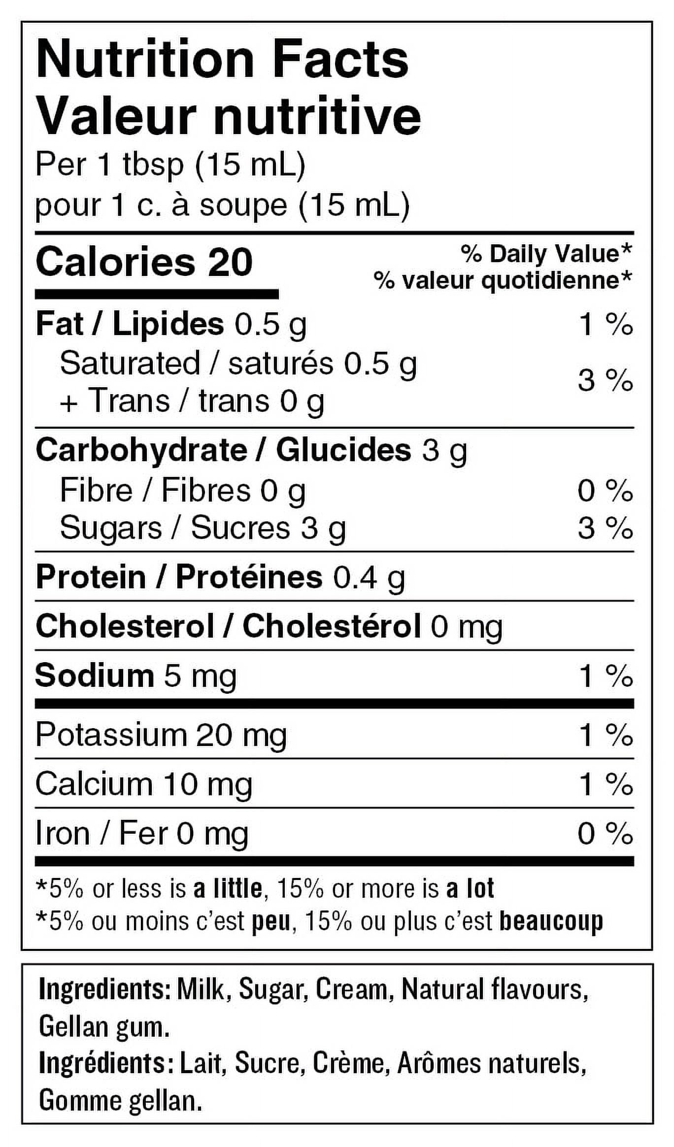 | Fabric Property | Made from milk. cream and ingredients of natural origin. Tasty. creamy froth. Versatility – Pour or Froth. Low sugar and fat. |